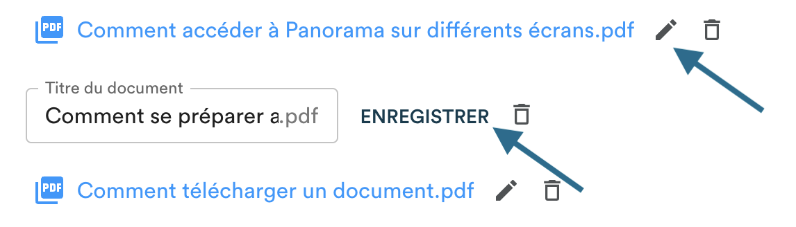 Pour afficher vos documents dans un ordre spécifique ou pour les attacher visuellement à des sous-points, vous pouvez les renommer directement dans Panorama.