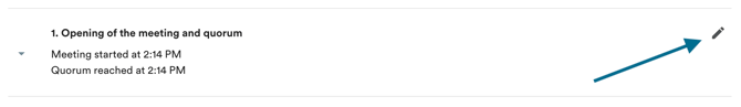 As with editing the agenda, you'll see on each minutes topic a button with a pencil at the top right that will allow you to edit the topic.