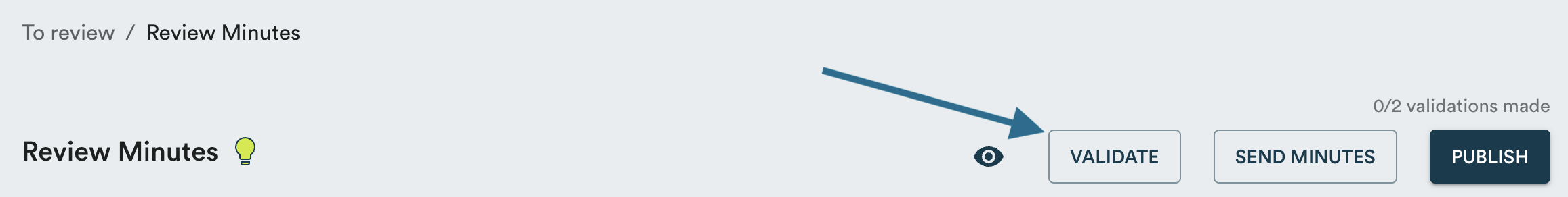 Once you've made your changes to the minutes, you can click "Validate" to apply your review seal.