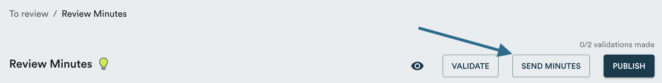 To do this, click the "Send minutes" button at the top of the minutes review page. As long as these minutes haven't been published, they can only be sent to other members with minutes editing permissions.