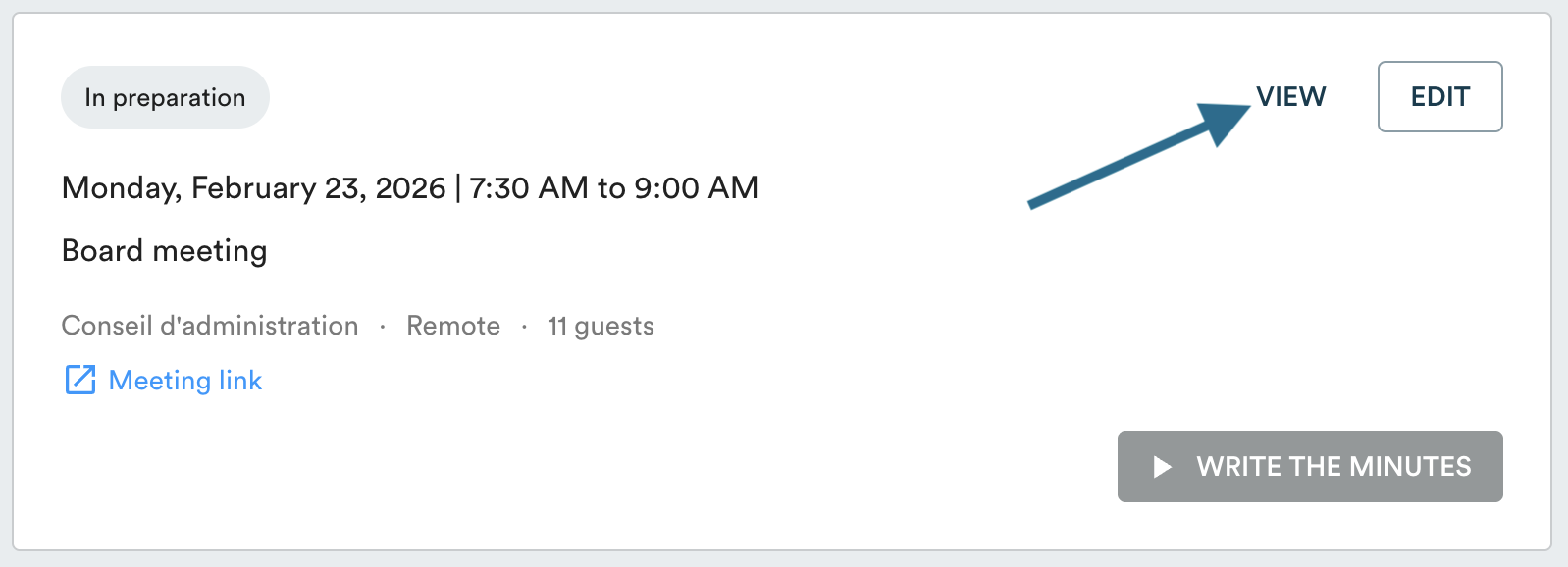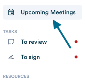 In your "Upcoming Meetings", click "View" to open the relevant meeting, then scroll to the bottom of the page.