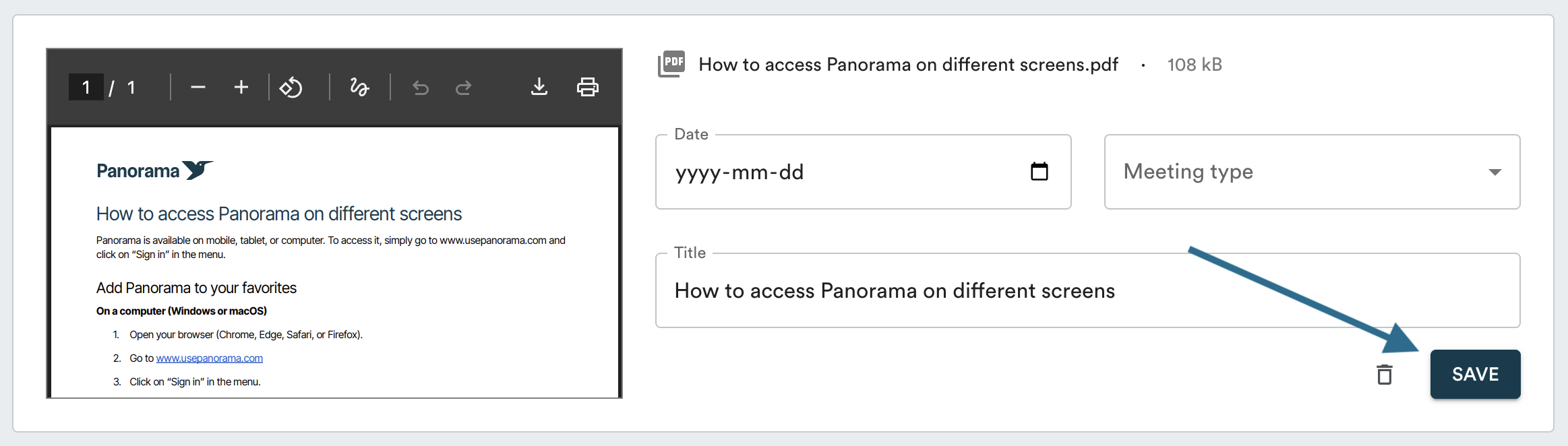 Click "Save" to add the document. The document will not be saved if you leave or refresh the page before clicking "Save".
