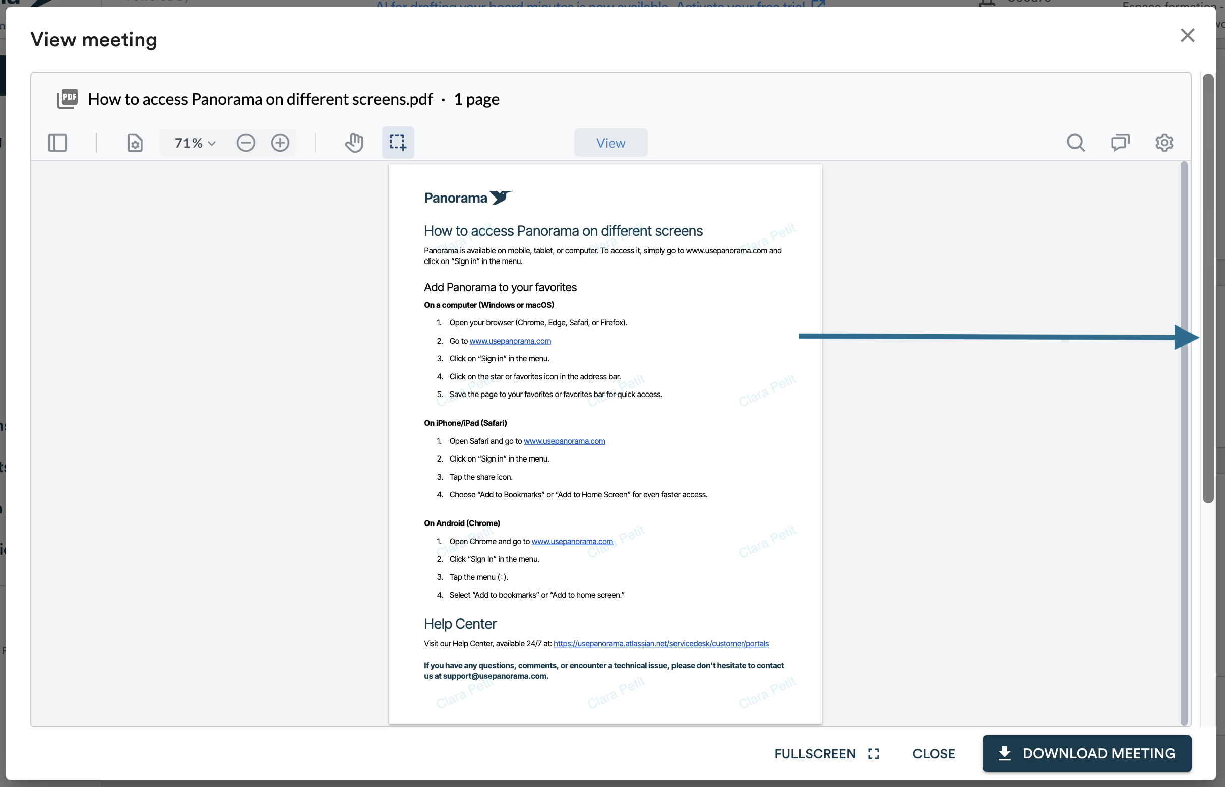 We recommend always using PDF format. Your documents will be viewable directly in Panorama, with no download required by your board members.