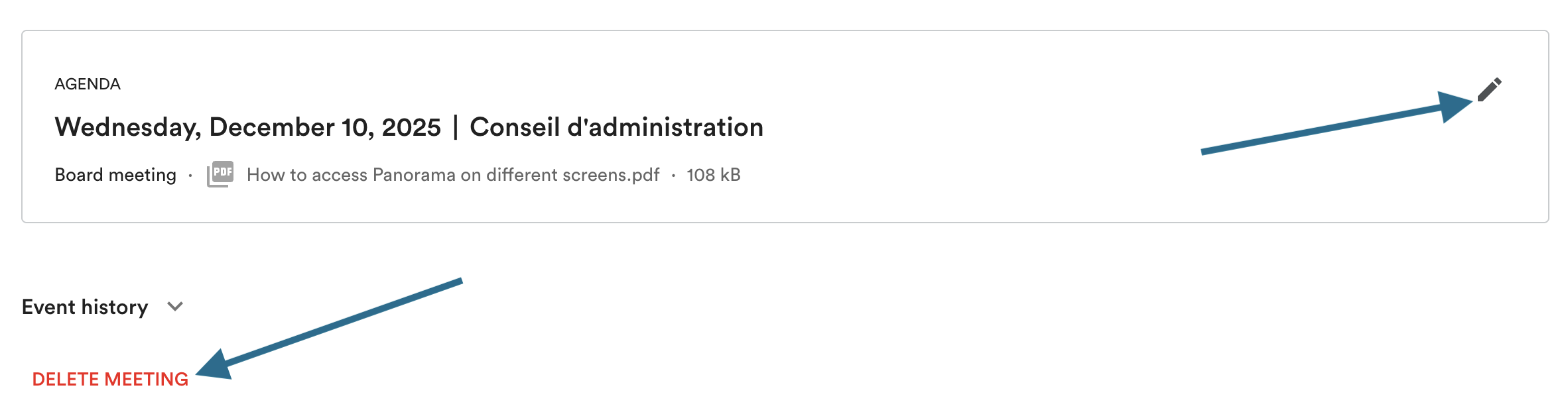 Once added, these documents remain editable. Click the pencil icon in the top right corner of the card to edit the date, meeting type or attached documents. By opening a document from your log, you can also view it (if it is a PDF), edit its details or delete it if you made an error.