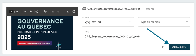 Cliquez sur "Enregistrer" pour ajouter le document. Le document ne sera pas enregistré si vous quittez ou rafraîchissez la page avant d'avoir cliqué sur "Enregistrer".