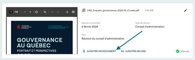 Le centre de documents est conçu pour vos documents finaux et approuvés : politiques, règlements généraux, procédures, etc. Pour les documents de travail, nous recommandons de les attacher directement à vos ordres du jour lors de leur révision par le CA. Une fois approuvé ou formellement adopté, le document peut être ajouté dans le centre de documents.