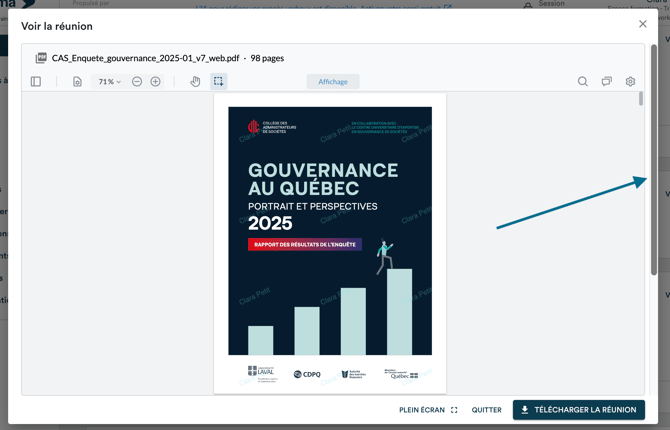 Panorama vous permet d'importer vos anciens procès-verbaux, résolutions et ordres du jour directement sous les onglets correspondants ("Procès-verbaux", "Résolutions" et "Réunions"), et d'ajouter vos documents de référence à votre centre de documents. L'importation des procès-verbaux, résolutions et ordres du jour est réservée aux propriétaires de compte. L'accès au centre de documents dépend des permissions configurées pour chaque membre.