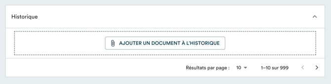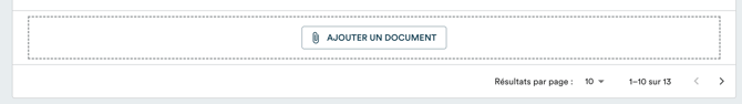 Naviguez dans l'onglet "Documents" du menu de gauche, puis cliquez sur "Ajouter un document" en haut à droite, ou déposez un fichier directement dans la zone de téléchargement du tableau tout en bas de la page.