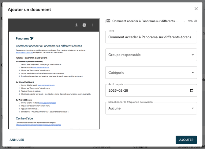 Une fois qu'une nouvelle version d'un document est approuvée, vous pourrez l'actualiser directement dans Panorama.